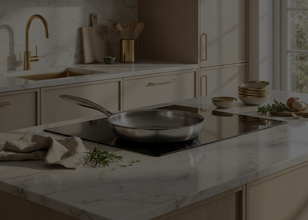 Kökshantverks titanpannor gör att du kan använda mindre olja och samtidigt bevara upp till 30 % mer näring i maten.